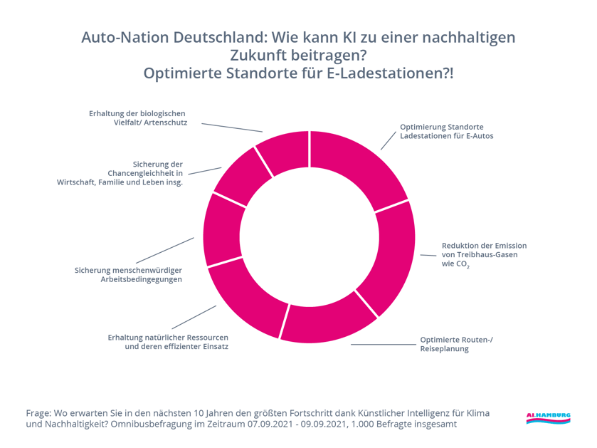 Nicht für den Erhalt der natürlichen Ressourcen, nicht für menschenwürdige Arbeitsbedingungen, nicht die Reduktion von Treibhaus-Gasen wie CO2. Die meisten Stimmen erwarten, dass der größte Fortschritt dank Künstlicher Intelligenz für Klima und Nachhaltigkeit bei der Optimierung von Ladestationen für E-Autos besteht. Deutschland und sein liebstes Kind.