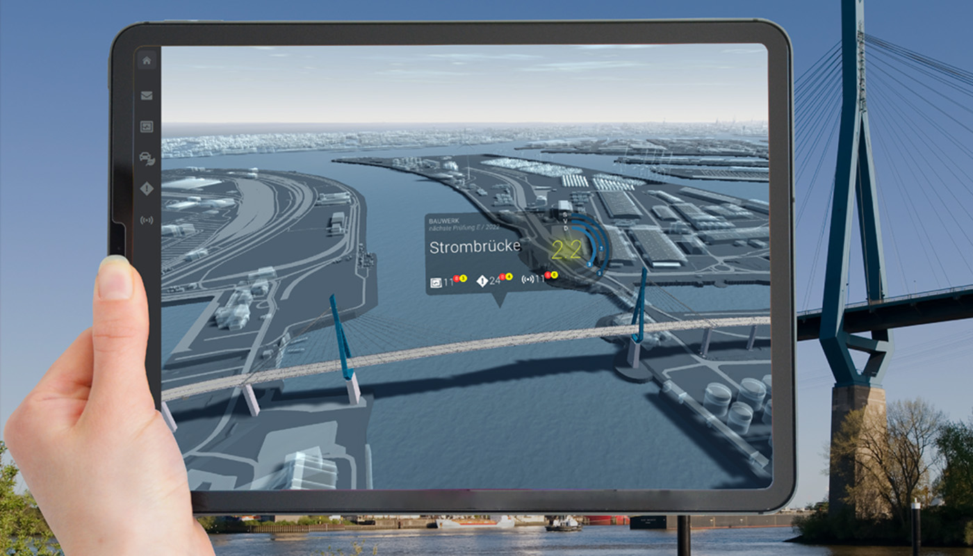 Eine auf elektrischen Sensoren basierende Datenkopie eines realen Objekts, der sogenannte Digitale Zwilling, optimiert bei Maschinen, Gebäuden und Infrastrukturbauwerken die notwendigen Unterhaltungs- und Wartungsarbeiten. Er soll Ausfallzeiten minimieren und Kosten sowie Instandsetzungen planbarer machen. smartBRIDGE Hamburg jedoch geht deutlich darüber hinaus. Die HPA hat eine Arbeitsgemeinschaft aus zwei Bauingenieurbüros und den Hamburger Softwareentwicklern von customQuake damit beauftragt, die Vision einer prädiktiven Instandhaltung und die Grundlage für eine automatisierte Verkehrssteuerung an einem Großdemonstrator, der Hamburger Köhlbrandbrücke, umzusetzen.